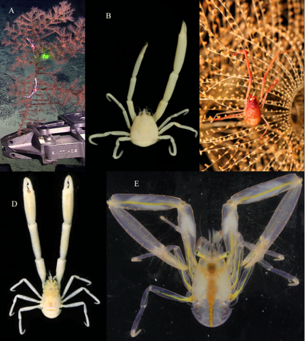 海山中的拟真刺虾和异胸虾,B、C为新种海洋所异胸虾