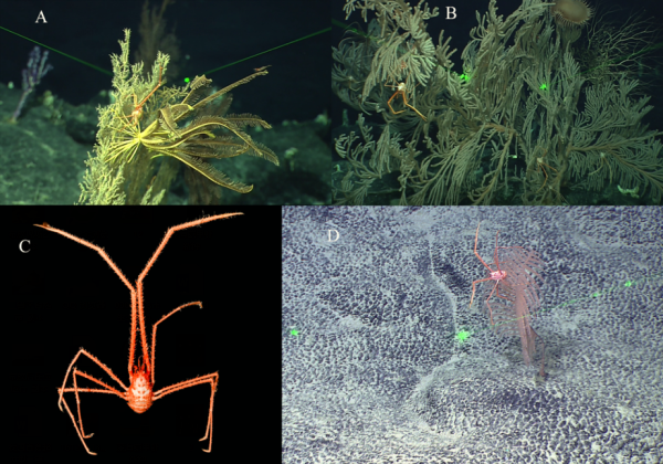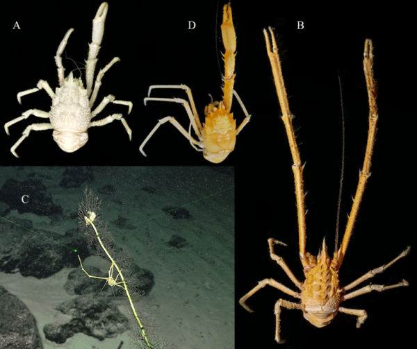 海山中的拟刺铠虾,A为新种异形拟刺铠虾;B、C为新种郭川拟刺铠虾;D为新种科学拟刺铠虾