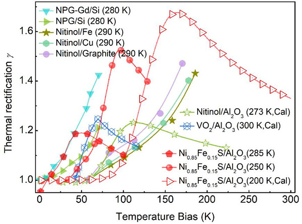 图2.典型固态热二极管的热整流效应对比