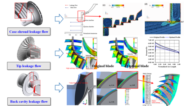 压缩空气储能系统因功率大、效率高、成本低等优点,成为颇具发展前景的大规模物理储能技术之一。向心涡轮是压缩空气储能系统的关键做功部件,具有运行压力高、结构紧凑、转子叶片平均展弦比小等特点,并使叶顶间隙、轮背间隙、轮盖间隙引起的泄漏流动损失更为显著。