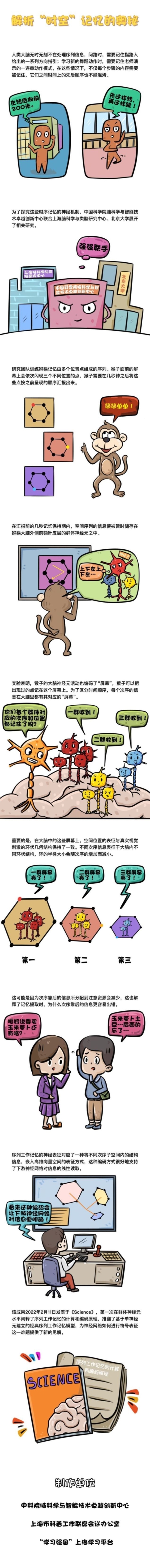 2月11日,Science以长文形式发表了题为《序列工作记忆在猕猴前额叶表征的几何结构》的研究论文。研究由中国科学院脑科学与智能技术卓越创新中心(神经科学研究所)、中科院灵长类神经生物学重点实验室王立平研究组、上海脑科学与类脑研究中心副研究员闵斌和北京大学生命科学学院唐世明课题组合作完成。该研究中,科学家训练猕猴记忆由多个空间位置组成的序列,并利用在体双光子钙成像技术记录猕猴大脑前额叶皮层的神经元活动。研究人员发现神经元以群体编码的形式表征了序列中的每一个空间位置,并在这些表征中发现了类似的环状几何结构。该研究推翻了经典序列工作记忆模型的关键假设,为神经网络如何进行符号表征这一难题提供了新见解。