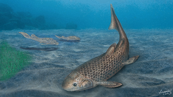 图1.会泽滇双翼鱼生态复原图(罗彦超、马萌绘,罗彦超供图)