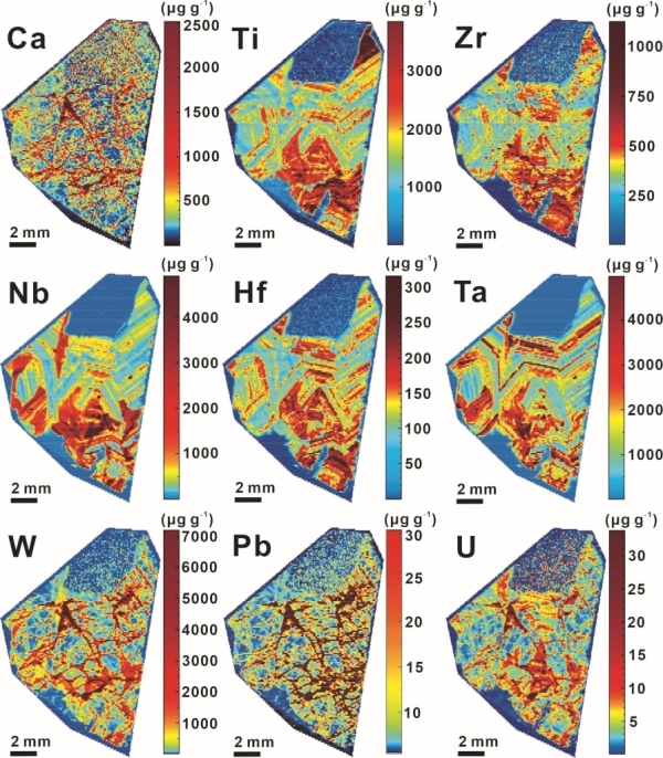 图4.Kard锡石样品激光微区微量元素面扫分析结果