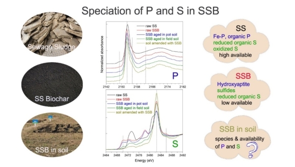 热解是废弃生物质重要的热化学转化技术。市政污泥是典型的废弃生物质,污泥热解衍生生物炭富含碳、磷(P)硫(S)和其他作物所需的营养组分,具有广阔的土壤应用前景。污泥中P、S元素在土壤重金属钝化过程中起着关键作用,但目前污泥生物炭中P、S进入土壤后其形态分布、转化特征和归趋尚不明确;关于污泥热解-土壤应用过程中碳封存及温室气体排放缺乏系统研究。近日,中国科学院生态环境研究中心刘振刚研究组利用同步辐射中能X射线近边吸收结构(XANES)等原位表征技术,探究了污泥生物炭中P、S在热解及土壤老化过程中形态演化的分子机制,并首次通过生命周期评价方法量化了污泥热解-污泥生物炭土壤应用系统中碳足迹。相关研究成果发表在Environmental Science & Technology与Journal of Cleaner Production上。