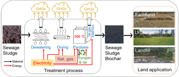 结果表明,污泥中磷酸铁(Fe-P)、有机磷在热解处理过程中转化为更稳定的类羟基磷灰石结构化合物,而热解过程中超过58%的硫被还原为S2-并与污泥中重金属等阳离子形成稳定的硫化物;在土壤老化过程中,污泥生物炭中稳定态磷又逐渐转化为有效性相对较高的形态(钙弱结合态磷),而硫化物逐渐被氧化、转化成活性高的无机硫酸盐形态。此外,由于对氧化还原环境响应机制差异,污泥生物炭中磷、硫在盆栽和大田土壤中呈现明显不同的形态变化特征。热解过程中磷、硫通过吸附、沉淀及硫化等反应影响并显著降低了污泥-土壤系统中重金属的有效态含量和环境风险。研究通过生命周期评价体系对污泥热解及其土地利用过程中碳足迹和关键影响因素进行量化和敏感性分析显示,相对于传统污泥厌氧消化-土地利用、填埋、焚烧等处理方式,污泥热解-土地利用碳排放消减率可达53%以上,碳减排优势显著。
