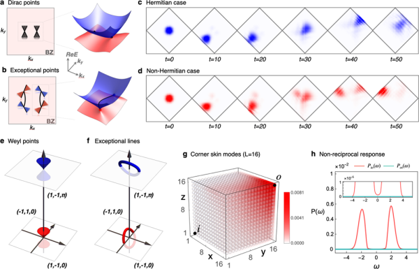 图3.具有例外点的光子晶体模型和具有例外线的外尔半金属。