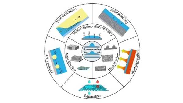 近日,中国科学院院士、中科院理化技术研究所研究员江雷和研究员田野团队在Accounts of Chemical Research上,以Bioinspired superspreading surfaces: from essential mechanism to application为题,发表综述论文,系统提出了超铺展概念及其表征方法,综述了超铺展表面的本质机理及研究进展,总结了超铺展的应用领域,展望了领域内遗留的重大挑战及发展方向。