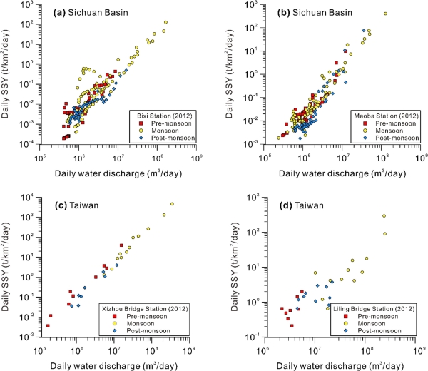 图3 四川盆地与台湾地区河流悬浮物产量变化