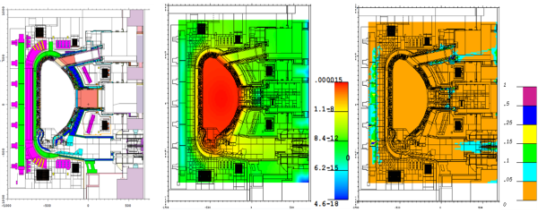 OTF加速方法的发展使蒙特卡罗方法应用于大规模、复杂模型的屏蔽分析成为现实,并高效服务于CFETR精细的全堆辐射场计算(图3),支撑了CFETR包层、偏滤器、加热系统等核分析与屏蔽设计,为磁体、真空室等关键部件核辐照条件下的安全运行提供重要评价依据,相关应用成果也发表在Nuclear Fusion上。
