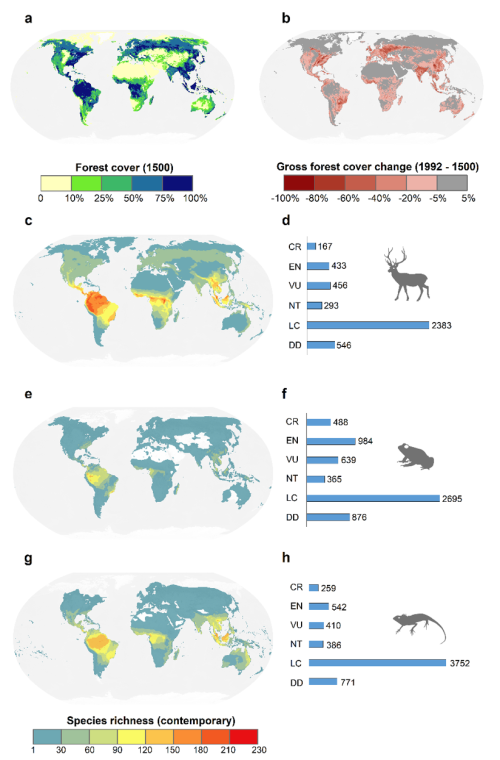 全球森林覆盖变化及林栖陆生脊椎动物的丰富度格局