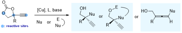图1.铜催化的环状炔丙基碳酸酯的取代反应