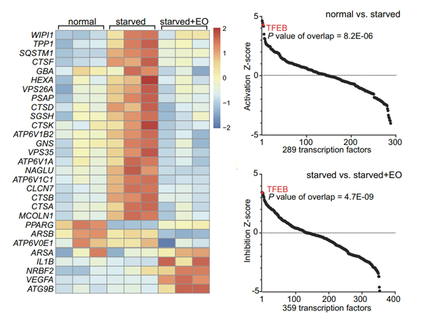 图1.小分子化合物EO在基因组水平选择性抑制TFEB的转录活性