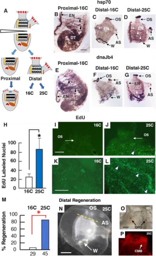 热休克对hsp70和dnaJb4表达、细胞增殖和远端片段再生的影响