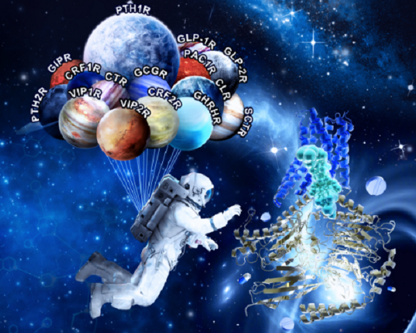 G-蛋白偶联受体(G protein-coupled receptor,GPCR)是细胞表面受体家族中最大的一类,调控着人体各种生命活动且与疾病密切相关,有超过30%的药物作用于GPCR。而B类GPCRs是一类重要的多肽激素受体,包括胰高血糖素受体(GCGR)、胰高血糖素样肽-1受体(GLP-1R)、葡萄糖依赖性胰岛素释放多肽受体(GIPR)和甲状旁腺激素受体1(PTH1R)等在内的共15个激素受体。它们主要通过调节多肽类激素的信号传导来调控多种生理功能,包括血糖调节、骨代谢、胃肠道功能、神经调节和生长调节等,并涉及许多疾病的发病机制,如糖尿病、骨质疏松症和癌症等,因此,B类GPCRs成为治疗肥胖、糖尿病和骨质疏松症、抑郁、心血管疾病、癌症等多种疾病的重要药物靶点。然而,由于B类GPCRs的复杂结构和信号传递机制,针对这些受体的药物开发尤其是小分子激动剂药物一直面临挑战。虽然一些针对B类GPCRs的多肽药物已上市,包括用于治疗2型糖尿病药物GLP-1类似物以及骨质疏松症药物PTH和PTHrP类似物等,但这类多肽类药物需要皮下注射,使用不便、费用昂贵,且伴有头痛、恶心等副作用。