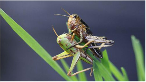 图2. 群居型飞蝗呈现背黑-腹棕的警戒色