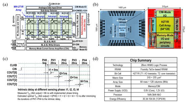 相关研究成果以A 28nm RRAM Computing-in-Memory Macro Using Weighted Hybrid 2T1R Cell Array and Reference Subtracting Sense Amplifier for AI Edge Inference为题,发表在《IEEE固态电路杂志》上。