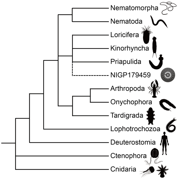 标本代表的环神经动物的亲缘关系。NIGP179459为具吻刺动物全群。