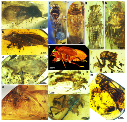 缅甸克钦琥珀中蝉总科成虫、若虫和蝉蜕化石