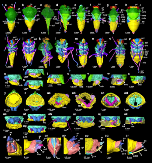 显微CT数据重建的化石和现生蝉总科的身体结构