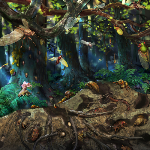 中生代森林中蝉的生态场景示意图