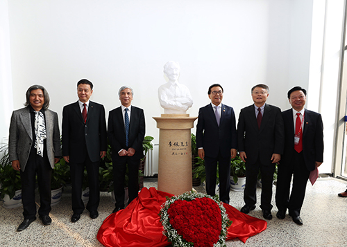 李佩先生塑像由中国美术馆馆长、国家著名雕塑家吴为山创作完成,也是国科大第四座塑像,其他三座分别为中科院原院长郭沫若、中国科学技术大学研究生院首任院长严济慈、著名地质学家刘东生的塑像。李佩雕塑揭幕当天,刘东生先生的子女无偿为国科大捐赠了刘东生生前的精品图书,为国科大40周年校庆增添了浓墨重彩的一笔,也为丰富学校图书馆藏、开阔师生视野提供了重要帮助。