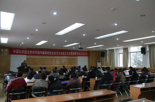 2月16日,中科院自然科学期刊编辑研究会武汉分会成立暨编辑学术交流大会在中科院武汉岩土所召开。中科院自然科学期刊编辑研究会副理事长兼秘书长戴利华、湖北省科学技术期刊编辑学会秘书长卢先蓉、中科院上海光机所联合编辑部总经理杨蕾、中科院上海生科院《植物生理学报》常务副主编周兆康、中科院国家科学图书馆《图书情报工作》期刊社社长兼主编初景利、武汉地区13个编辑部全体成员及科学出版社武汉分公司、中科兴业印务有限公司的部分领导约50人参加会议。