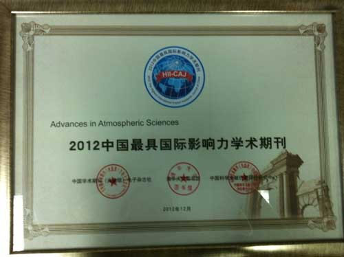 由大气物理研究所和IAMAS中国委员会主办的英文期刊Advances in Atmospheric Sciences (AAS)在中国学术期刊(光盘版)电子杂志社、中国科学文献计量评价研究中心与清华大学图书馆评选的“2012年度中国最具国际影响力学术期刊”(http://hii.cnki.net/cajz/index.html)中,入选175个“最具国际影响力”的科技期刊,排名36(图1)。