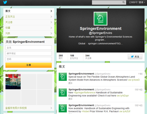 Advances in Atmospheric Sciences(AAS)2013年第3期Special Issue on Flexible Global Ocean Atmosphere Land System Model (FGOALS) CMIP5 Experiments 于2013年4月一出版就受到广泛关注。本期专刊文章的发表,适逢政府间气候变化专门委员会(IPCC)工作组筹备IPCC第五次评估报告,许多国外科学家来信索要全文,极大地提升了AAS的国际影响力。这引起AAS海外发行商Springer的高度重视,开始在Springer中英文微博上大力宣传FGOALS专刊(图1、图2);与此同时, Springer还在SpringerLink上对该期中的一批文章放开3个月免费全文下载http://www.springer.com/earth+sciences+and+geography/atmospheric+sciences/journal/376?detailsPage=societies 。