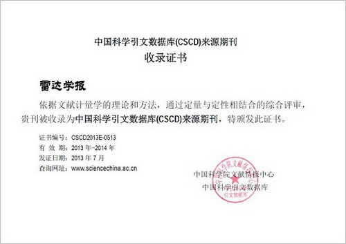 2013年8月,《雷达学报》被收录为中国科学引文数据库(Chinese Science Citation Database,CSCD)来源期刊,证书编号:CSCD2013E-0513,有效期:2013年─2014年。