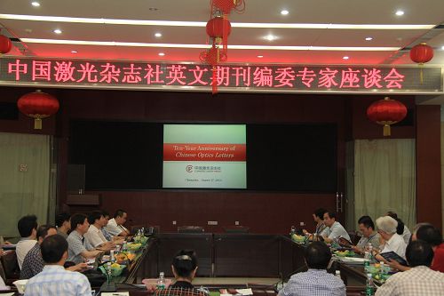 8月17日上午,在2013年中国光学学会学术大会召开之际,中国激光杂志社在国防科技大学,召开了英文期刊编委、专家座谈会。姜文汉院士,周立伟院士,上海光机所党委书记、副所长邵建达研究员,中国光学学会副理事长兼秘书长、Chinese Optics Letters(COL)副主编龚旗煌教授,Photonics Research(PR)主编周治平教授,中国激光杂志社总经理杨蕾编审等36位编委、专家和中国激光杂志社部分编辑参加了此次座谈会。会议由杨蕾编审主持。
