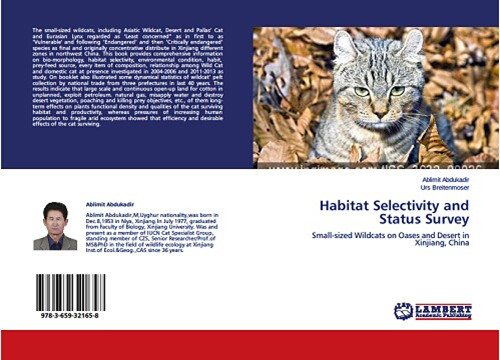 近日,由中国科学院新疆生态与地理研究所阿布力米提· 阿布都卡迪尔研究员主编的专著Habitat Selectivity and Status Survey of Small-sized Wildcats on Oases and Desert in Xinjiang(《新疆荒漠-绿洲小型野猫类的栖息地选择与生存现状》)由德国蓝博特科学出版社(Lambert Academic Publishing)正式出版。IUCN物种生存委员会猫科动物专家组主席Urs Breitenmoser为通讯作者。