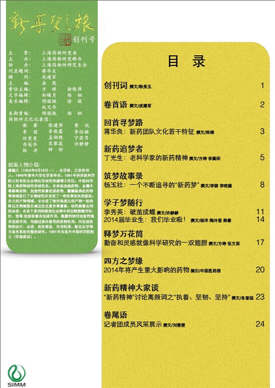 为记录、反映、展示学习与团队成长的“中国梦-新药梦”风采,提升“新药精神”认同,为实现“新药梦”营造良好的创新文化氛围记录和反映上海药物研究所文化和新药精神,由所党委主管、党群办主办、研究生会协办,药物所创办了《新药梦之旅》创新文化刊物。