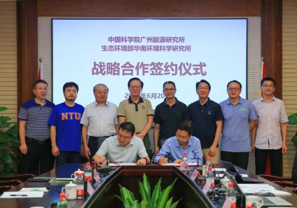 签约仪式上,广州能源所副所长孙永明和华南环科所副所长于云江代表双方签署《中国科学院广州能源研究所 生态环境部华南环境科学研究所战略合作协议》。该协议旨在聚焦国家生态环境保护和能源领域战略需求,充分发挥各自优势,实现强强联合、优势互补,推动生态环境保护和能源综合利用,在科学研究、创新平台、人才培养、标志性成果等方面取得突破性进展。