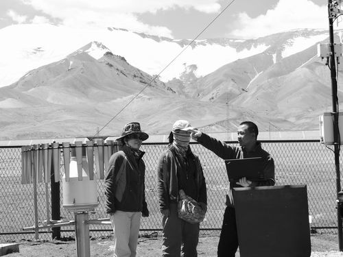 这里的温度明显低于格尔木,必须穿上较厚的外套。走了几步后,记者心跳加速,不再敢问问题。午餐是从格尔木带上来的冰凉食品,大家各自席地而坐,独自享用。
