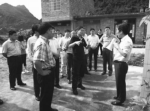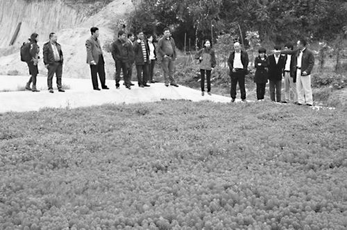 中科院STS计划“南方土壤重金属污染风险区划与治理技术”项目群启动会议在广西环江召开。中科院副院长施尔畏(中)出席会议并考察地理所环江土壤污染重金属修复试点 。