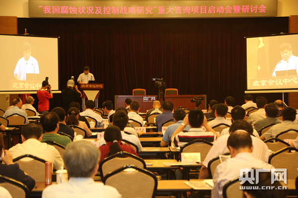 由中国工程院主办的“我国腐蚀状况及控制战略研究”重大咨询项目启动会暨研讨会今天下午在北京会议中心举行。30余位中国科学院和中国工程院院士和100多位腐蚀与防护领域的专家参加了本次项目启动会和研讨会。中国工程院主席团名誉主席、中国工程院原院长徐匡迪出席了项目启动会并做重要讲话。