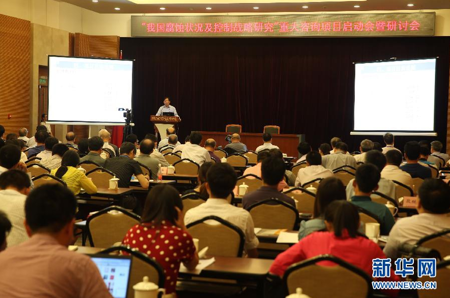 6月11日,“我国腐蚀状况及控制战略研究”重大咨询项目负责人、中国工程院院士侯保荣在项目启动会暨研讨会上作汇报。当日,为期两天的“我国腐蚀状况及控制战略研究”重大咨询项目启动会暨研讨会在北京会议中心举行,30余位两院院士以及100多位腐蚀与防护领域专家参加了项目启动会。本项目将针对基础设施、交通运输、能源、水环境、生产制造及公共事业等五大领域30多个行业部门进行腐蚀成本和防护策略的调查研究,获取我国总的腐蚀成本,普及腐蚀和防护知识,提出可行的腐蚀控制战略建议。
