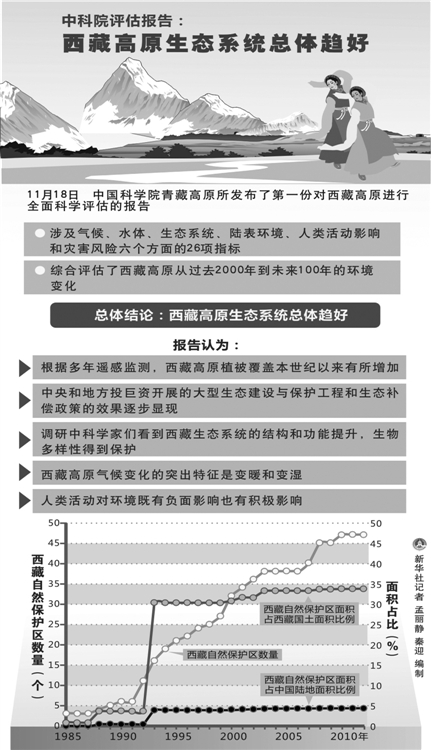 西藏是我国重要的生态安全屏障。西藏、青海两省区及国家相关部委制定了青藏高原、西藏和青海“三江源”地区生态建设与保护规划。张宪洲表示,研究表明,在气候变暖和人类活动加剧的条件下,正是中央和地方投入巨资开展的大型生态建设与保护工程和生态补偿政策,让高原地区的生态环境仍然得到了较好的保护。