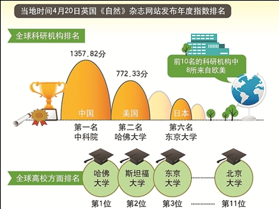 该榜单显示,中国科学院是位居世界首位的科研机构,并自2012年指数编制以来持续位列第一。但从整体来看,欧美等传统科研强势地区仍然优势明显。除中科院和排名第6位的东京大学外,前10名的科研机构中另外8所全部来自欧美。