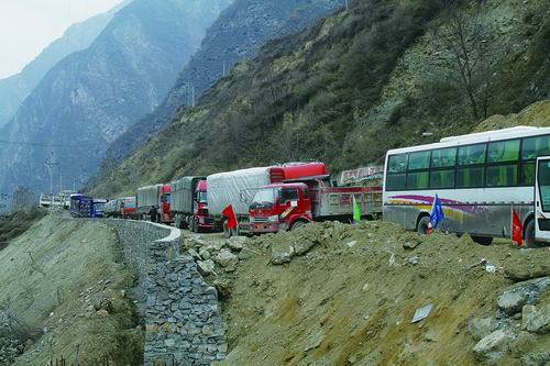 在龙门山区因滑坡造成的堵车天天有,地震后更加严重。