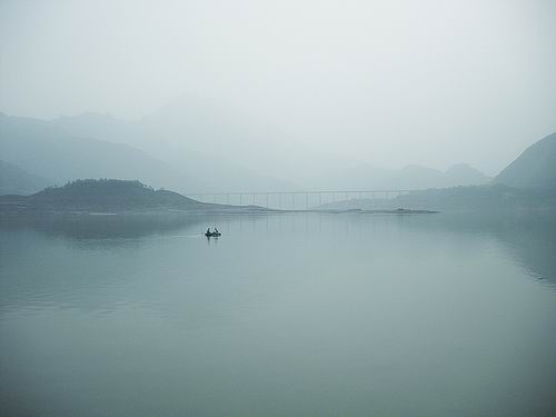 一连数十天划着小皮筏艇在烟雾撩人的紫坪铺库区进行不间断观察和采样。