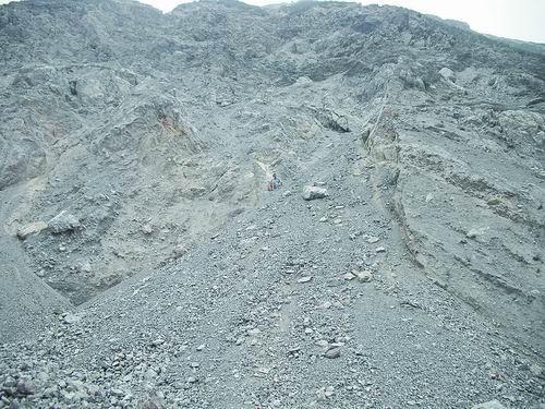 据悉,滑坡的碎石非常松散,有些落石随时可能滚下来。晴天的时候,风吹一下,表面的碎石就往下滚,而一下雨就更危险了。