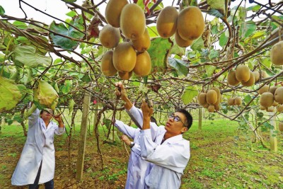 科研人员密切观测猕猴桃良种长势。