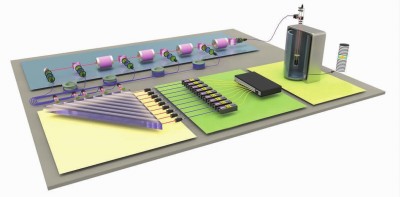 实验台上,上百个大大小小的元器件看似杂乱无序地排列着,它们却构成了光量子计算机的核心——光量子处理器。当单光子发生器产生的光子通过线路输送到这里,它就可以进行量子计算。目前,这里实现的是基于5个单光子特定任务的量子计算。潘建伟说,尽管现在的量子计算机很稚嫩,但它会很快显示出强大的本领——处理电子计算机无法解决的问题。