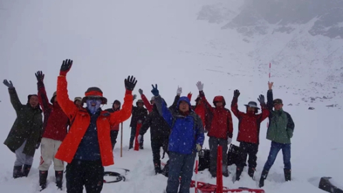 观测人员在天山1号冰川