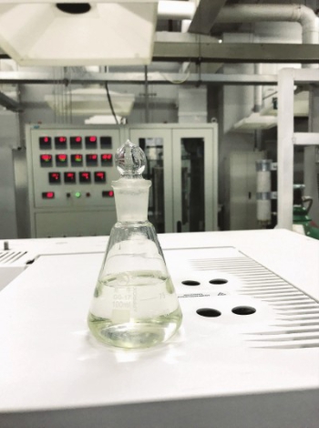 二氧化碳转化成的液体燃料看上去清澈透明。记者许琦敏摄