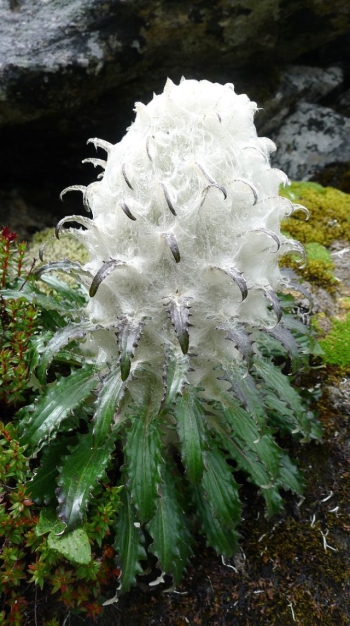 可别小看了这件不起眼的“外套”,它保护着娇嫩的雪莲不受霜冻之害,又可“锁水”——减少因蒸腾作用导致的水分丧失,同时还能“防晒”——反射高原上强烈的太阳辐射,可谓一件多功能的“战袍”。