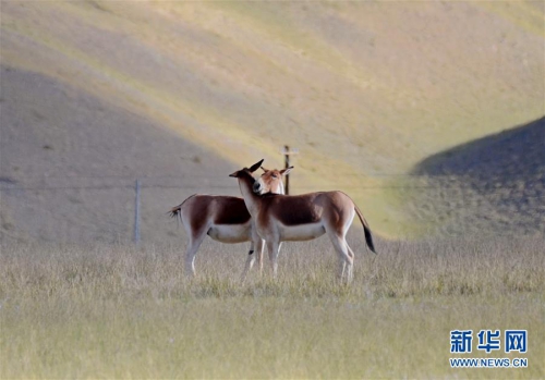 8月24日在西藏阿里地区札达县拍摄的一对“秀恩爱”的藏野驴。西藏阿里,被称为“世界屋脊的屋脊”。第二次青藏高原综合科考目前正在这里进行。七夕之际,科考队专家、中科院西北高原生物研究所副研究员连新明讲述了青藏高原精灵“情侣”们的“爱情”故事。新华社发(连新明 摄)