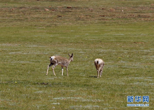 7月10日在藏北羌塘草原拍摄的藏原羚。西藏阿里,被称为“世界屋脊的屋脊”。第二次青藏高原综合科考目前正在这里进行。七夕之际,科考队专家、中科院西北高原生物研究所副研究员连新明讲述了青藏高原精灵“情侣”们的“爱情”故事。新华社记者 刘东君 摄