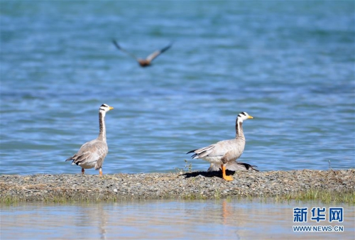 8月26日在西藏阿里地区班公湖畔拍摄的一对斑头雁。西藏阿里,被称为“世界屋脊的屋脊”。第二次青藏高原综合科考目前正在这里进行。七夕之际,科考队专家、中科院西北高原生物研究所副研究员连新明讲述了青藏高原精灵“情侣”们的“爱情”故事。新华社发(连新明 摄)